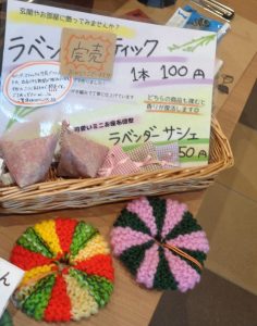 サシェも好評だし、編み物のたわしも、